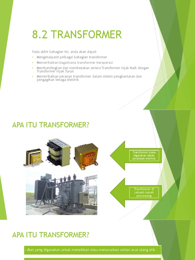 43 Transformer Prinsip Kerja Transformer Ringkas transformer injak turun dan transformer injak naik yang digunakan dalam peralatan elektrik. Dalam loji kuasa penjana disambungkan kepada belitan voltan rendah transformer injak naik. 178-180 622 - Berkomunikasi mengenai transformer dan fungsi transformer dalam penggunaan peralatan elektrik di rumah.